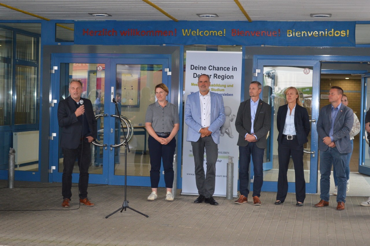 Lars Wärmer, der den Arbeitskreis Wanzleben-Oschersleben „Schule trifft Wirtschaft“ leitet und der diese Messe organisiert hat, bedankte sich bei der Berufsschule, begrüßte vor allem die jungen Menschen ringsherum und schloss an sie gewandt: „Findet euren Traumjob hier bei den Unternehmen in der Region!“ Für die engagierten Leute im Arbeitskreis ist es am wichtigsten, den jungen Menschen zu zeigen, was für tolle Berufe es in den Betrieben vor der Haustür gibt.