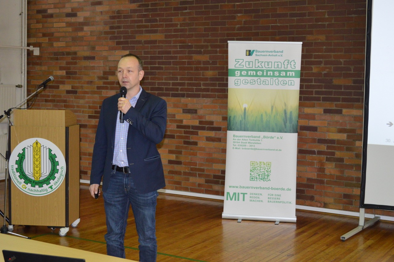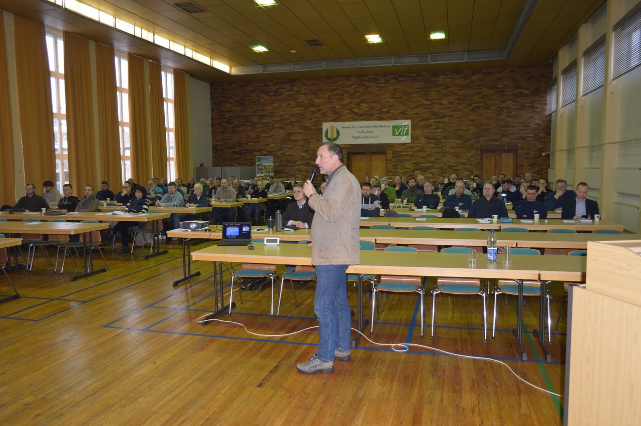 So nahmen kürzlich an der vom Bauernverband „Börde“ e.V. organisierten Bildungsveranstaltung in der Haldenslebener Landwirtschaftsfachschule über 70 Landwirte teil. Diese Weiterbildungen werden von den Landwirten gern im Winter genutzt, wenn auf den Feldern nicht soviel zu tun ist. An diesem Tag hatten etliche Teilnehmer einen anstrengenden Weg nach Haldensleben, denn alter und frischer Schnee sowie Eis auf den Straßen waren morgens noch nicht überall beseitigt. Aber Marius Thordsen Denecke, Geschäftsführer Bauernverband Börde, eröffnete die Versammlung pünktlich, während die allerletzten angemeldeten Zuhörer noch ihre Plätze aufsuchten.