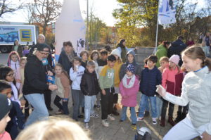 Ein besonderer Gast war der Landtagsabgeordnete Tim Tessmann, der als ehemaliger Schüler der Kästner-Grundschule unbedingt beim Milchausschank dabei sein wollte. Zig Becher der gesunden Flüssigkeit füllte er mit den beiden Landfrauen und Börde-Bauernverbands-Geschäftsführer Marius Thordsen Denecke ab und gab sie den durstigen Mädchen und Jungen in die Hand. Während dessen mussten drei Lehrer gegen drei Schüler im Seilhüpfen antreten. Es ging um einen hausaufgabenfreien Nachmittag. Wolfgang Zahn von der Agrarmarketinggesellschaft rechnete das Ergebnis schön, so dass auch wirklich die Schüler gewannen. Um diese ging es ja schließlich. Sehr interessant fanden die Jungen und besonders die Mädchen das Interview mit der deutschen Meisterin im Damenflorett, Elisa Meier. Mathias Jettschat ließ sich von der jungen Frau im weißen Fechtdress vorführen, wie man mit dem Florett umgeht. Auch viele der Kinder sind in irgendeiner Sportart aktiv. Das fragte der Moderator in der umstehenden Runde ab. Lustig ging es zum Abschluss der Hofpause über den Schulhof in der „größten Polonaise Sachsen-Anhalts“, ehe der normale Schulalltag wieder Einzug hielt.